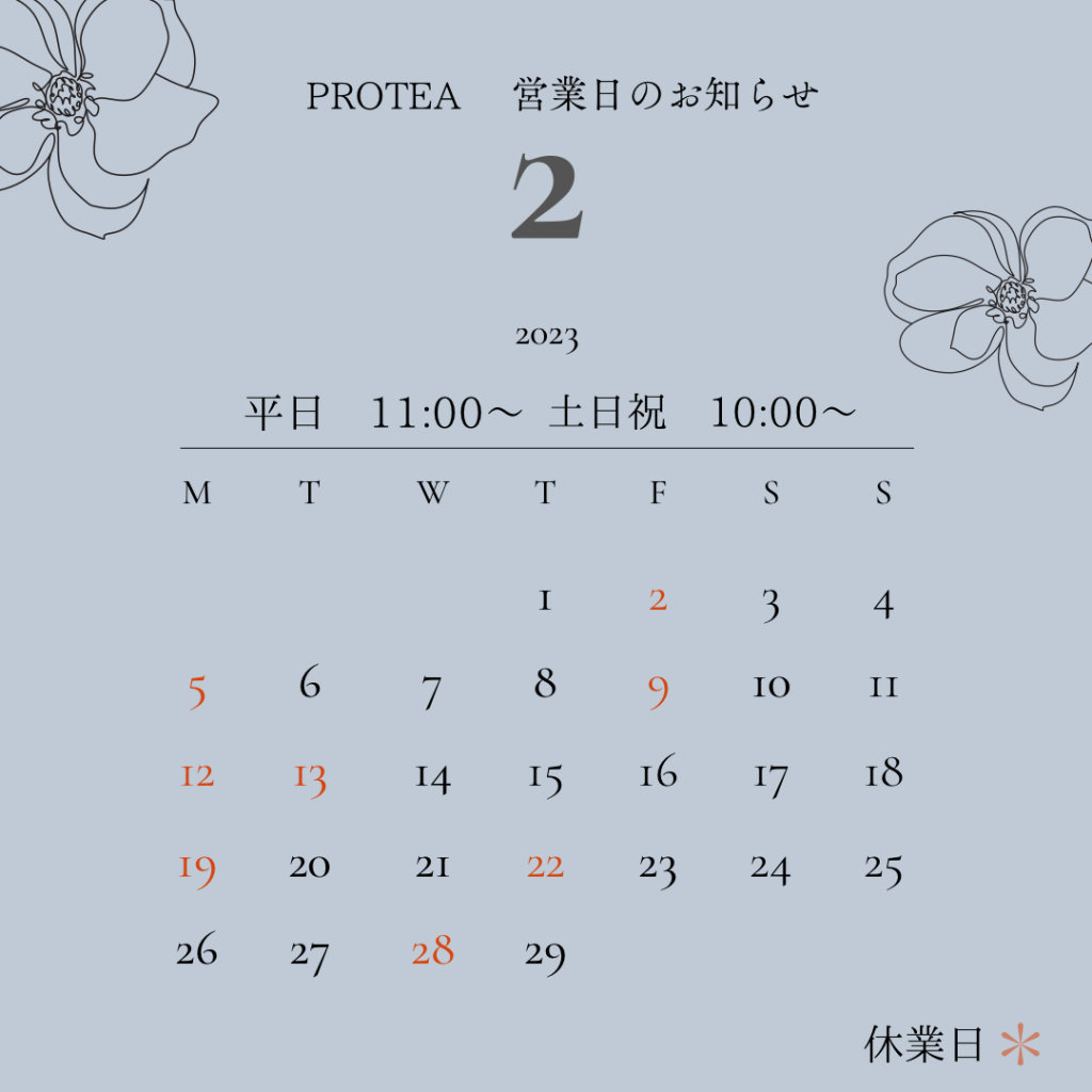 2月 営業日のご案内