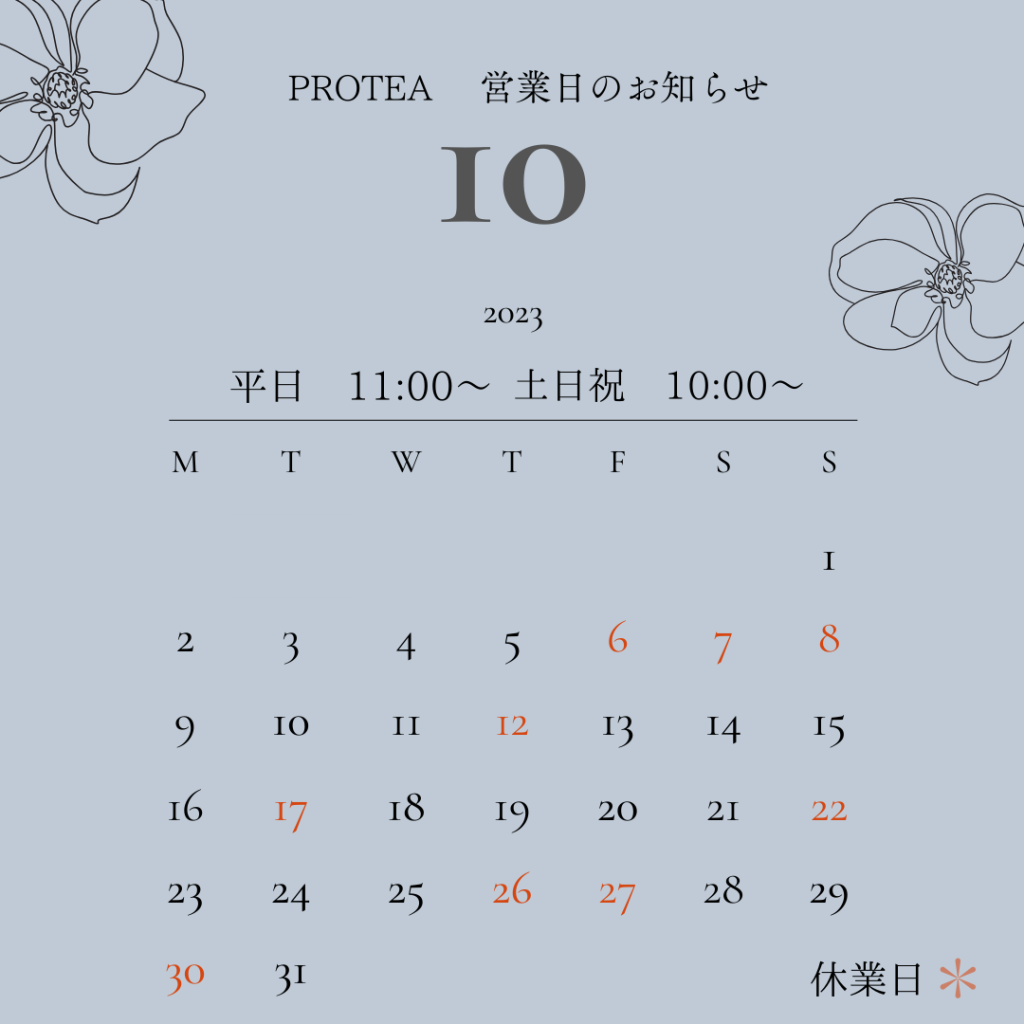 皆様こんにちは。10月 営業日のご案内になります☘️※赤文字が定休日です 営業時間外は一度ご相談ください◎ 藤枝市藤枝5丁目10-8オリジナルハウスオフィスビル2F090 6291 3497LINE ID 【@777pimkv】 平日 11:00~20:00 土日祝 ... -